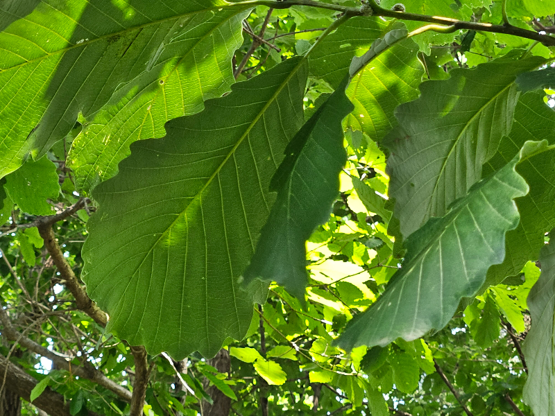 ♠ 떡갈나무나 신갈나무에 비해 잎자루가 길며, 졸참나무에 비해서는 잎이 크고 가장자리에 물결 모양의 톱니가 있어 구별된다.