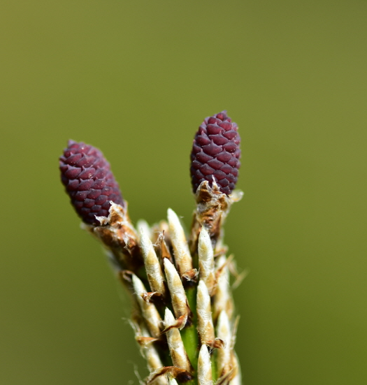 꽃: 암수한그루, 수꽃이삭은 황색이며, 새 가지 아래쪽에 많이 모여 달린다. 암꽃이삭은 자갈색이며, 수꽃차례 위쪽에 2~3개씩 달린다.