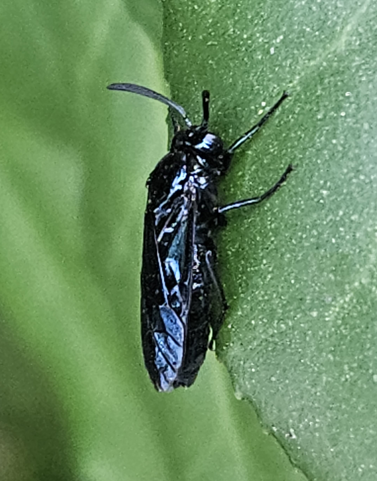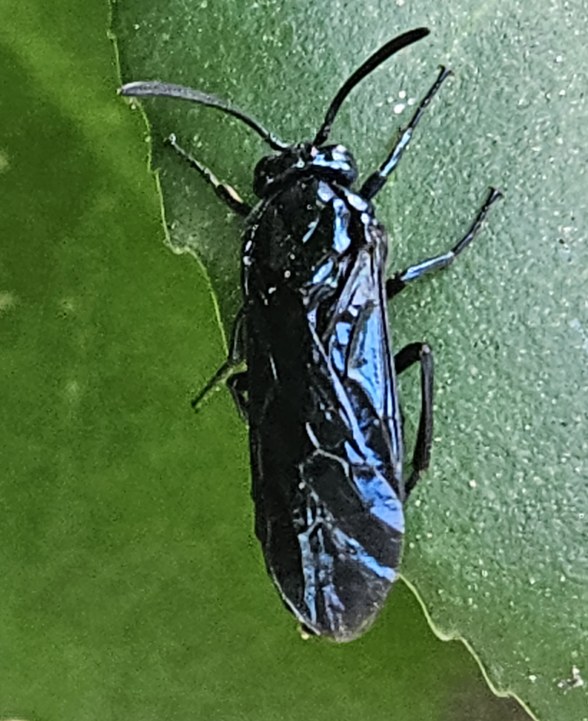 암컷 성충은 톱과 같은 산란관을 잎 가장자리 조직 속에 삽입하여 산란된 것은 팽대해지고 갈색으로 변한다.