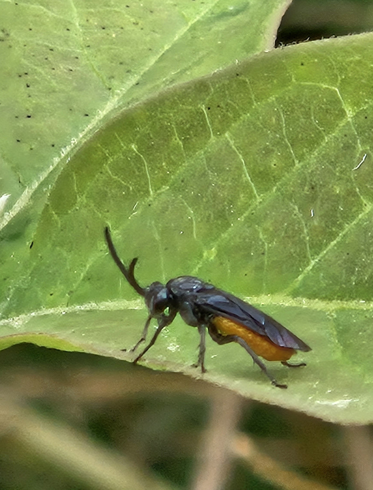 성충의 몸길이는 8mm 정도이며 머리와 가슴은 검은색이고 배는 황색이다.