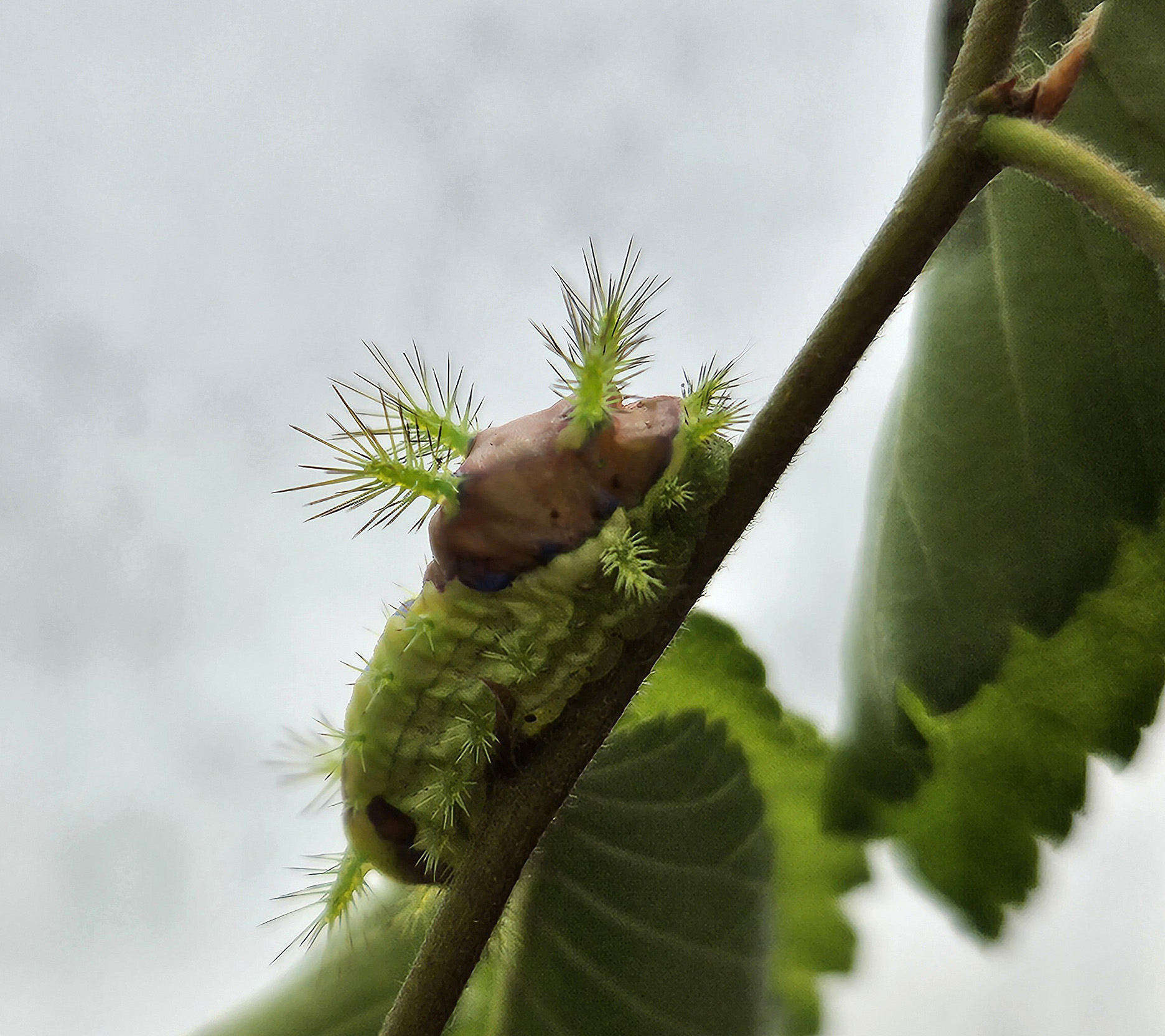 <단풍나무를 식해하고 있는 노랑쐐기나방 유충>