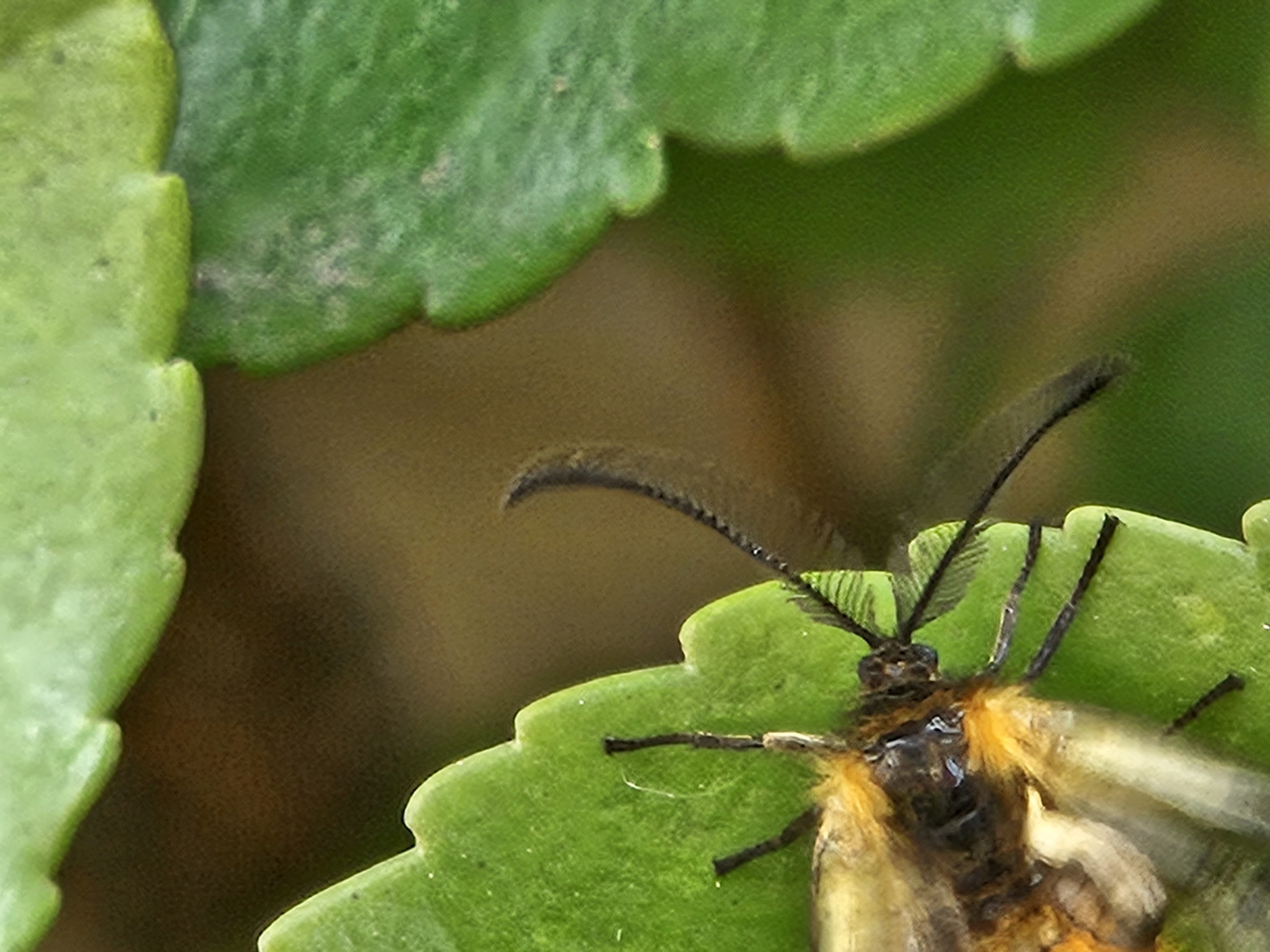 암컷과 수컷의 더듬이가 확연히 구분되는데 수컷의 더듬이는 암컷이 풍기는 페로몬을 쉽게 탐지하기 위해서 크고 화려한 빗살무늬이고, 암컷의 더듬이는 가느다란 실모양으로 그 끝이 곤봉처럼 살짝 부풀어 있다.