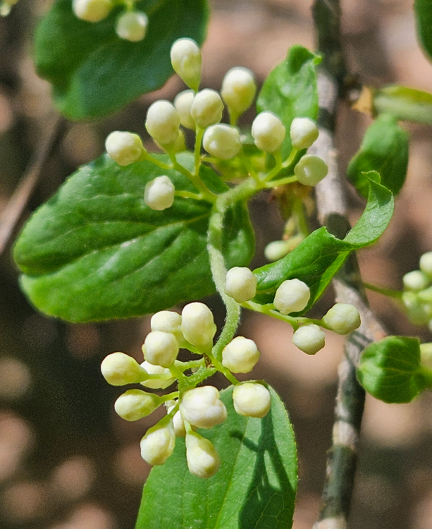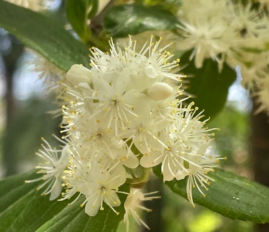 꽃: 양성화, 새 가지 끝과 잎겨드랑이에 흰색 꽃이 모여 피며, 향기가 있다.