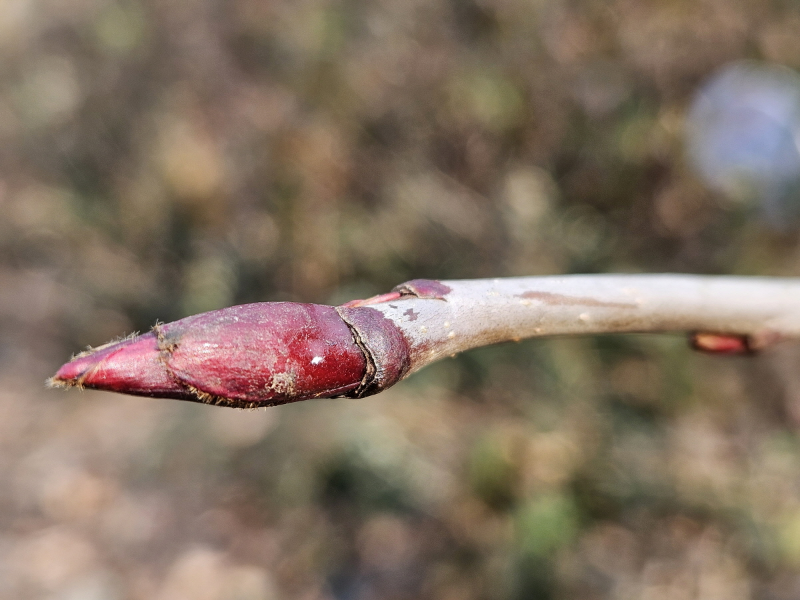 겨울눈: 물방울형이며, 끝이 뾰족하다. 2~4장의 눈비늘조각에 싸여있으며, 겨울눈 표면에 수지 성분이 있어 끈적끈적하다.