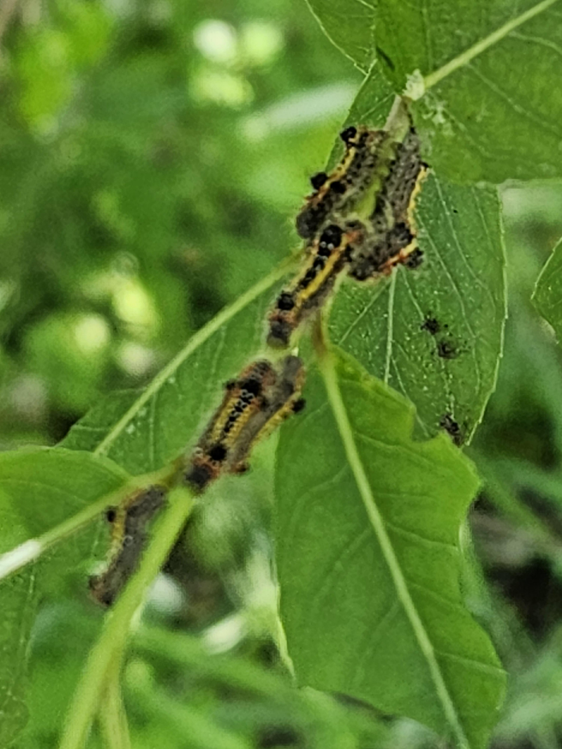 부화유충은 처음에 모여서 잎살만 갉아먹어 잎을 그물 모양으로 만들고. 자라면서 나무 전체로 분산하여 잎자루만 남기고 전부 갉아먹는다. 유충 한 마리가 60~95㎠의 잎을 먹는다. 8월 이후에 피해가 심하다.