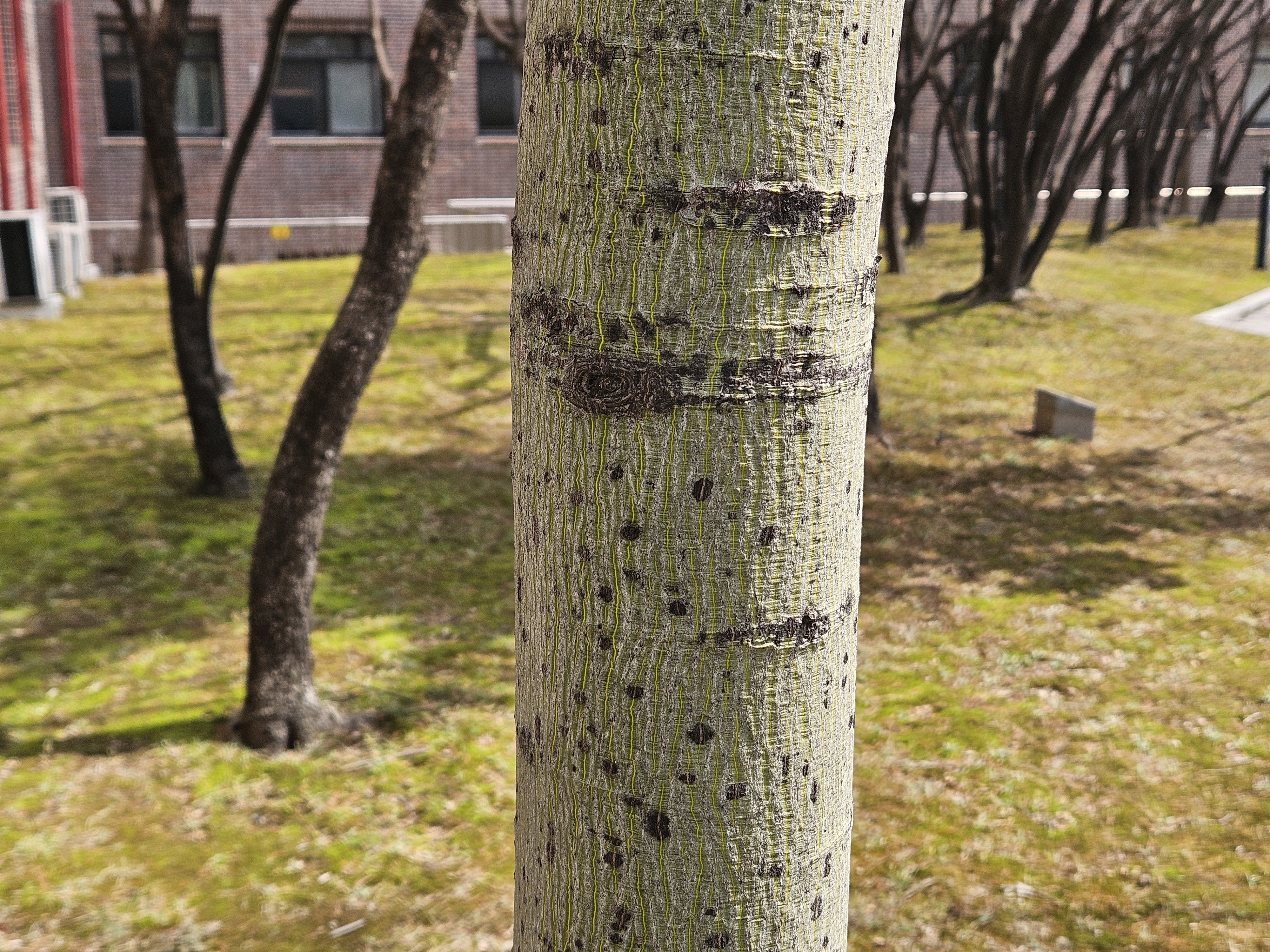 수피: 유목은 청록색이고 매우 매끈하다. 성장함에 따라 회백색이 되고 세로줄이 생긴다.
