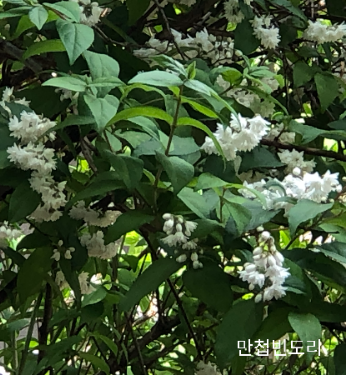 ♠ 겹꽃이 피는 품종을 '만첩빈도리'라고 하며 빈도리보다 더 흔하게 식재하고 있다.