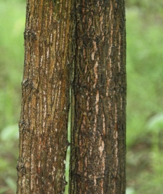 수피: 짙은 회색 또는 회갈색이며, 오래되면 불규칙하게 세로로 갈라진다.
