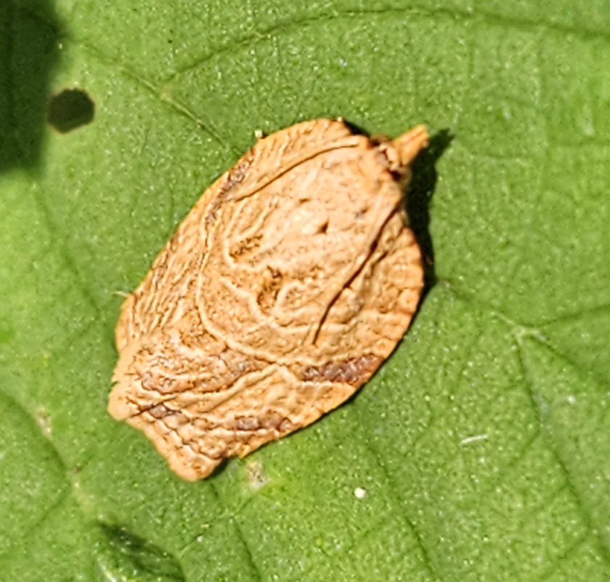 유충은 연한 황록색을 띠고 머리는 연황갈색이다. 가슴다리는 갈색이고 앞가슴등판은 황갈색이다.