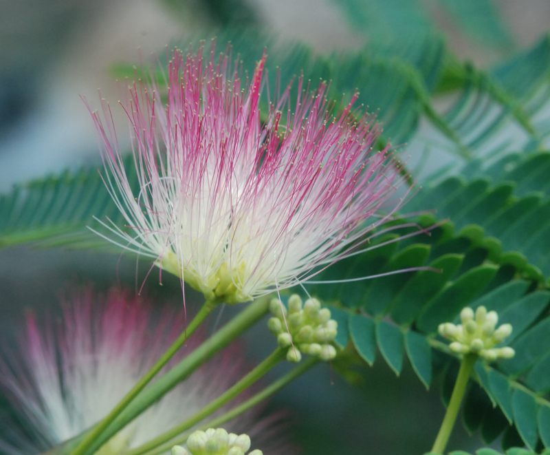 ♠ 꽃잎이 퇴화하고 꽃술만 남아서 비단실을 풀어놓은 듯하다. 영어 이름은 실크트리(silk tree), 비단나무라고 한다.