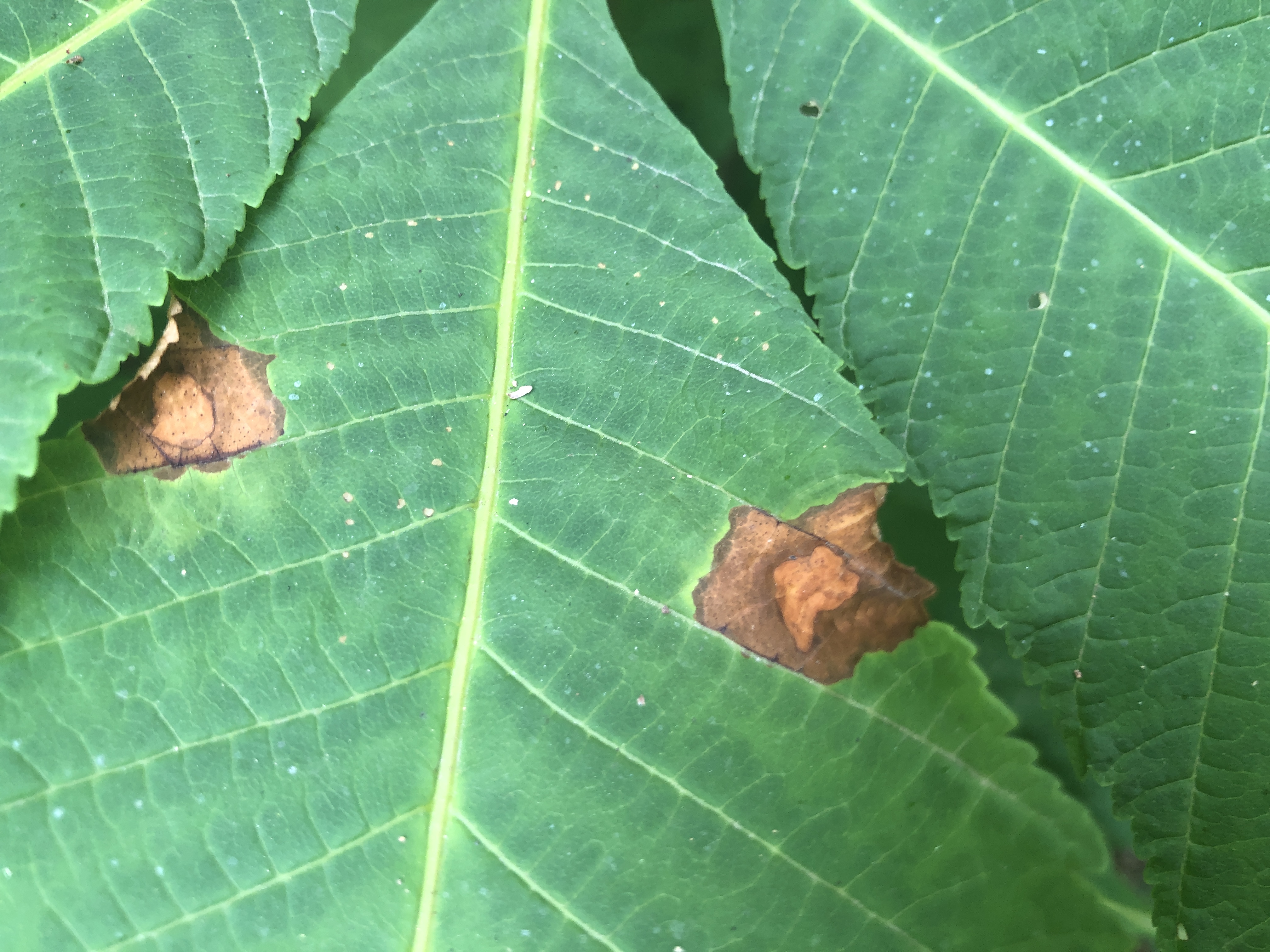 ♠ 병원균: Guignardia aesculi, 곰팡이, 자낭균류 (자낭포자와 2종의 분생포자 형성)