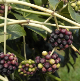 열매: 핵과, 구형이며 다음해 4~5월에 검은색으로 익는다.