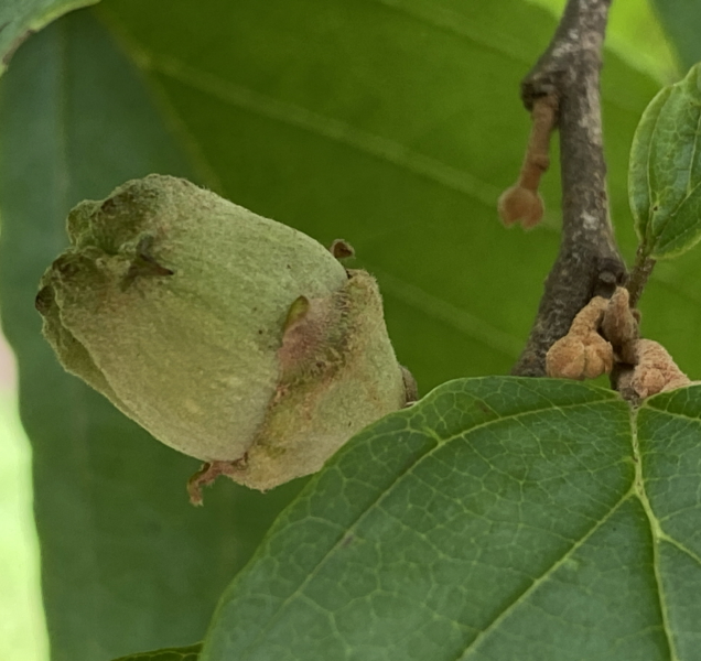 열매: 삭과, 달걀꼴의 구형이며, 갈색으로 익는다. 겉에 짧은 털이 밀생한다. 9월에 익으면 2갈래로 갈라져 2개의 종자가 나온다.