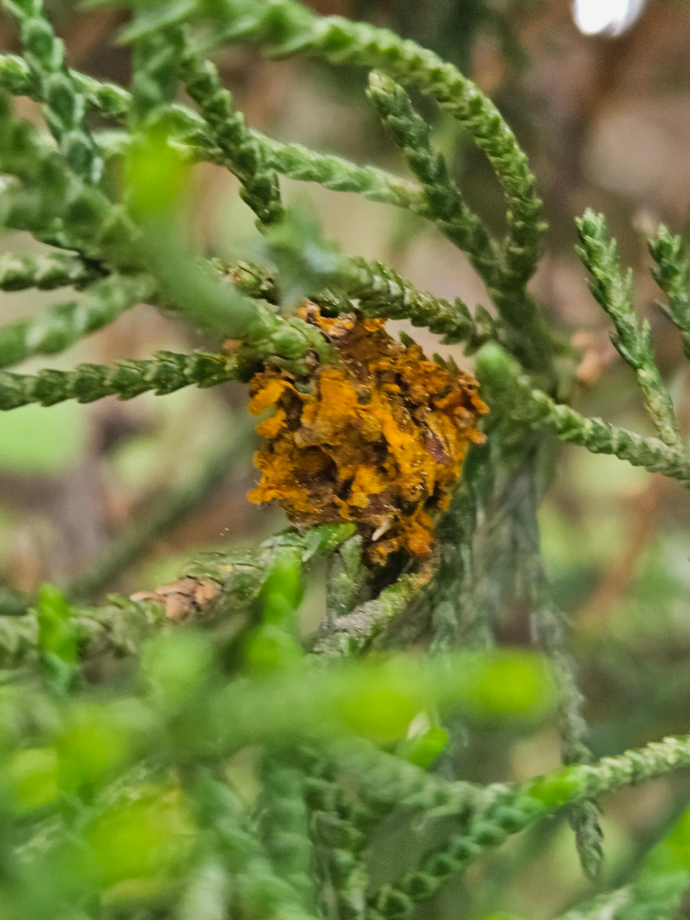 이른 봄에 여러 종류의 향나무에서 흔히 볼 수 있는 병으로, 4월에 비가 잦을 때 많이 발생한다.