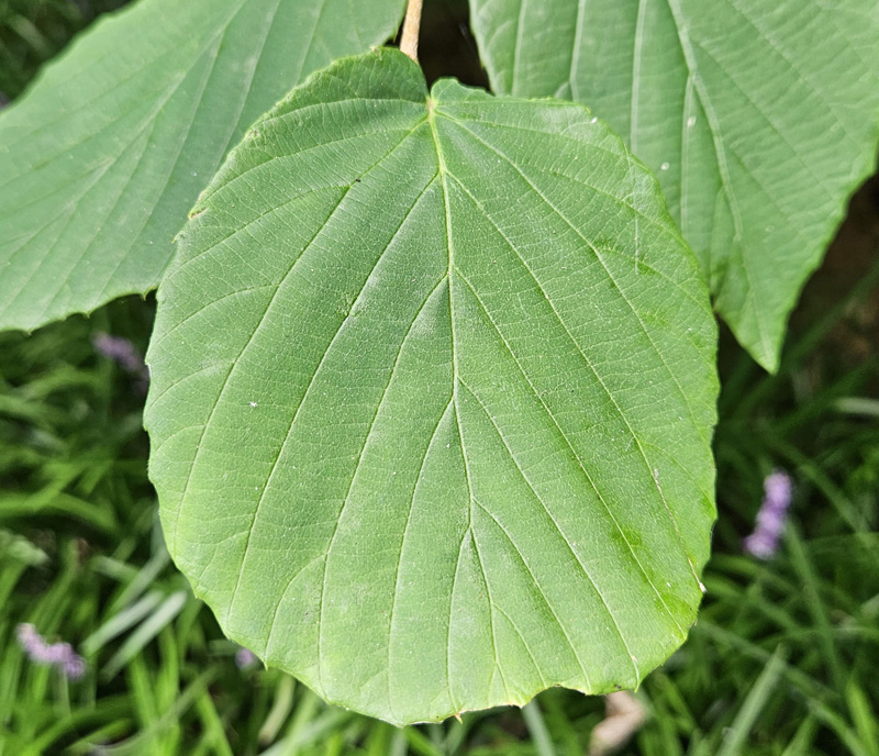 잎: 어긋나기, 밑부분은 심장형이고 가장자리에는 뾰족한 모양의 톱니가 있다. 표면은 녹색이고 측맥이 뚜렷이 발달한다. 잎 뒷면은 녹백색이고 털이 없으며 잎자루도 털이 없다. 잎맥은 나란히 나오고, 질감이 부드럽다.